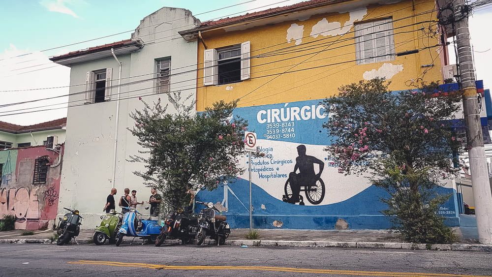 “40, 48...52! Here it is!”. The windows of the old two-story building were wide open and we could hear some Ska music coming out. There's no chance we were wrong, we were at the Scooteria Paulista at last! Three of the members of the scooter club of Sao Paulo were patiently waiting for us. We had told them that we would be there late in the evening and it was around midnight when we finally arrived. Stergios knew the guys. Three years ago he had traveled from Buenos Aires all the way up to Sao Paulo in order to park our scooter here, in the welcoming hands of the Scooteria. Somewhere inside the building there was Kitsos waiting for us. Friendly hugs, beer, jokes and pizza: our first night in Sao Paulo. “At some point, we thought you were never coming back!” told one of the guys while we were seated on the sofa, right next to Kitsos. Our scooter was standing like a museum exhibit in front of the wall with the pictures from our trip. The guys had done a magnificent job hosting it. After all this time and all these kilometers, Kitsos wasn't just pieces of iron and plastic, he had his own life. “Listen!” told Gabriel as he got up and went towards the scooter. He pushed the horn and it beeped! “It's alive!”.