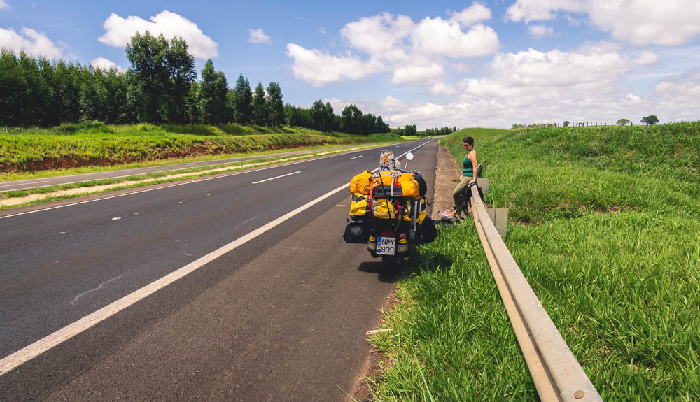“Don't you even dare to move from here!” I aggressively ordered Stergios. “You have 38.5 fever!”. He stayed in bed looking his exhausted self in the ceiling mirror – yes, it was this kind of motel... And more specifically, the worst one we'd ever stayed. That day I couldn't imagine in how many other places similar to this one we'd stay later on. Brazil wasn't that cheap for us, or to put it more correctly: our daily budget for the trip wasn't that high. To be fair, Brazil was generally a little cheaper than Greece and far cheaper than Western European countries, but we don't want to spend more than 20€ in total per day and this had proved a bit tricky. (30€ just to spend the night at a campsite in the town Brotas made us cry-laugh...). We had started to change our plans about Brazil. At first, we had thought of going north, to the Amazon. Take a riverboat, get stuck with the scooter in the sand and everything... But we had to admit our defeat. We had just begun traveling and we were concerned about our budget as well as about the weather. Heat wave at the coastal side, rain and 50 degrees in the forests. The same in Belem, Macapa, Manaus, Boa Vista... problems escalating in Venezuela where we were thinking to enter then, mud and rain across the BR319 to Porto Velho... After some discussions we made a decision: we'd leave Brazil behind and come back later, during winter and with more confidence about our (low) budget.