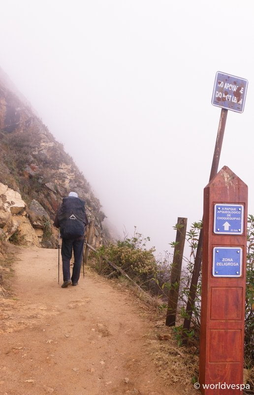 Another reason why Choquequirao is not that famous is because of the difficulty of access. We had our information on how to visit it and we decided to do the 4-day (at least) trekking towards it and back. Some visitors prefer to hire a guide and mules to carry their luggage but we couldn’t afford this kind of luxury. It would be the two of us on a 22km trail (and 22kms more to get back), starting from Cachora, a small village accessible by vehicles 3,000m of altitude, going down to 1,500m next to Apurimac river and then up again at 3,000m to reach the archeological site. We had our doubts about our physical condition but since we were not under time pressure, we had decided to take our time to do the trekking. We had read that there is water and food available at the small settlements / camps along the way, so we had no worries.