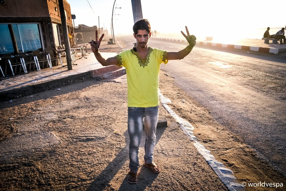 The road now is a straight line and it’s the first time I’m happy to drive in a straight line! On our right hand, the Atlantic ocean with its huge waves and the fresh sea-breeze, on our left hand the ultimate nothing-ness(!). Only the line of the horizon! This image is what we had been seeing everyday traveling from Tan Tan until just before the borders of Mauritania, where we are right now in a small room of a motel above a gas station.